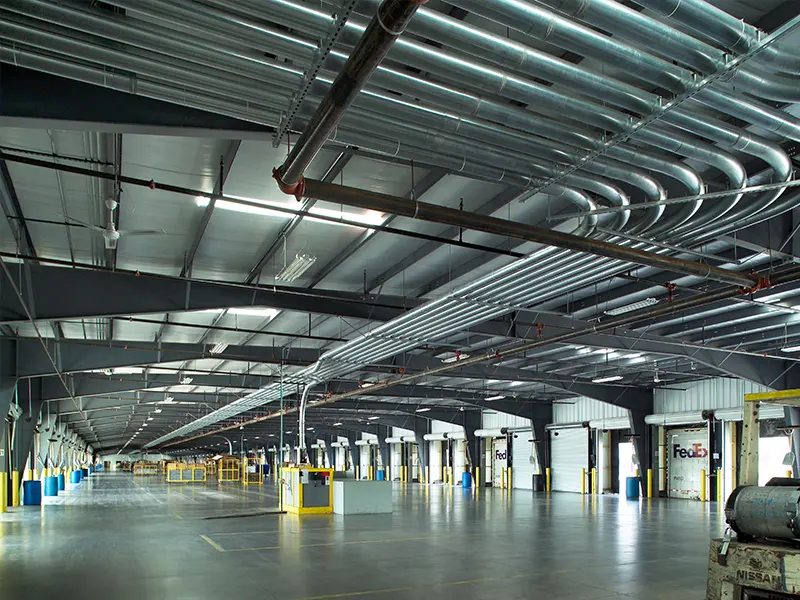 Typical layouts include single-span or multi-span warehouses, with or without mezzanine floors, office areas and overhead cranes.
